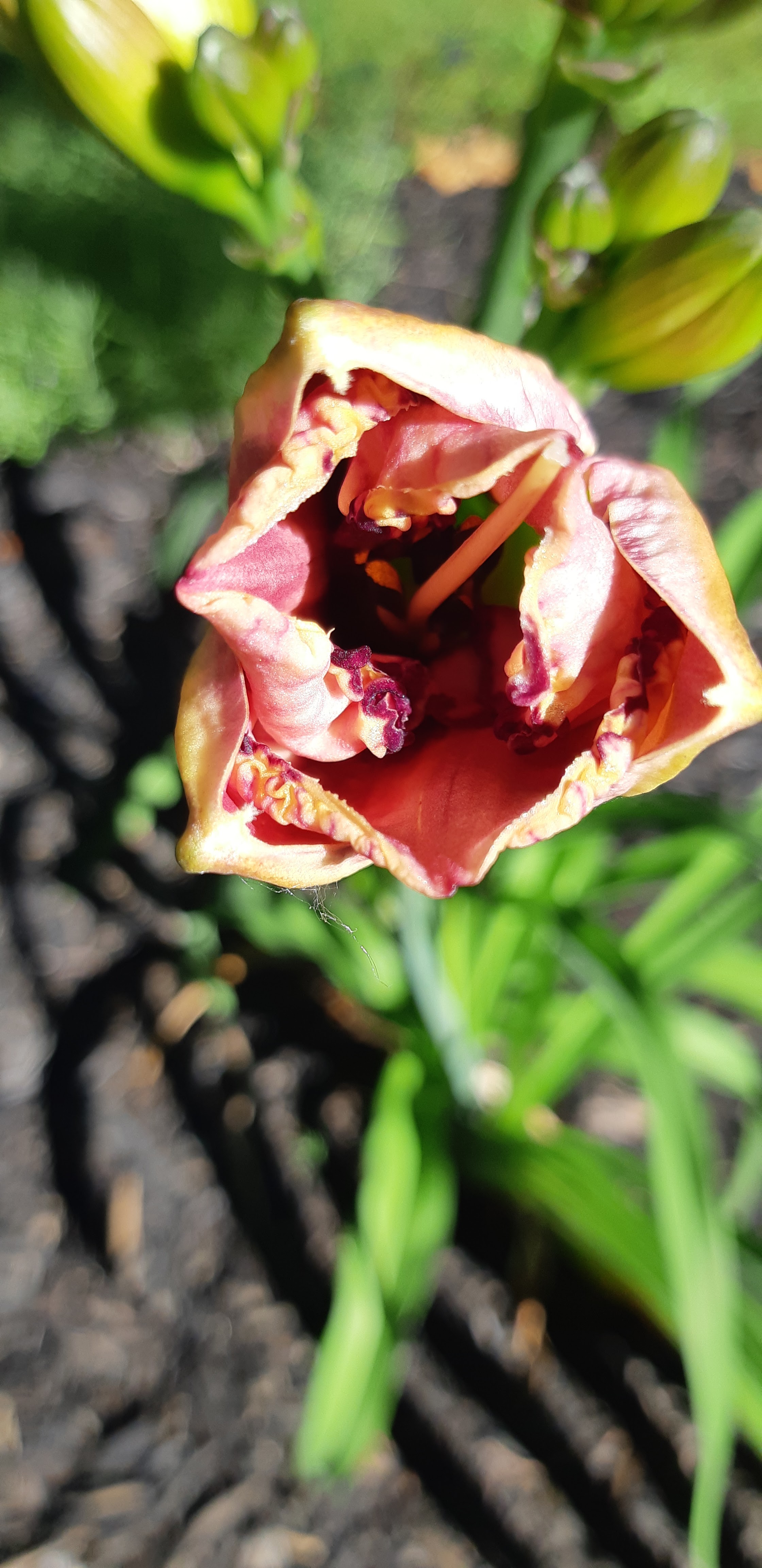 I'm especially pleased with this lily I purchased last year, but which did not bloom until now. This is the first time I'm seeing its glory...almost.